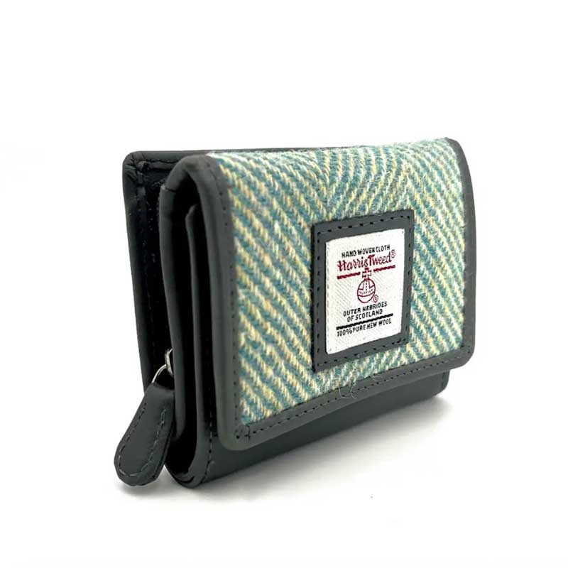 Harris Tweed Trifold Purse In Turquoise Herringbone