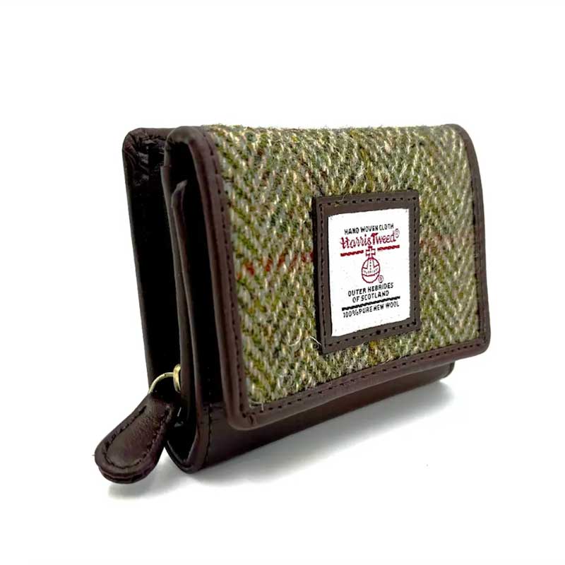 Harris Tweed Trifold Purse In Country Green