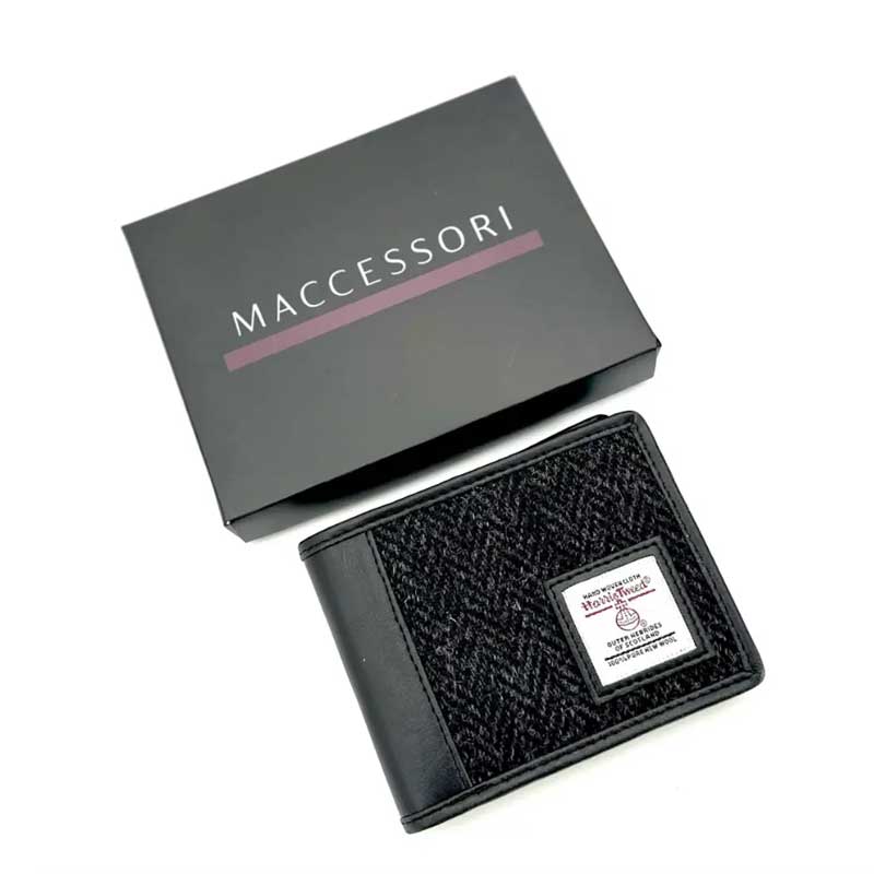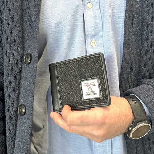 Harris Tweed Bifold Coin Wallet In Charcoal.