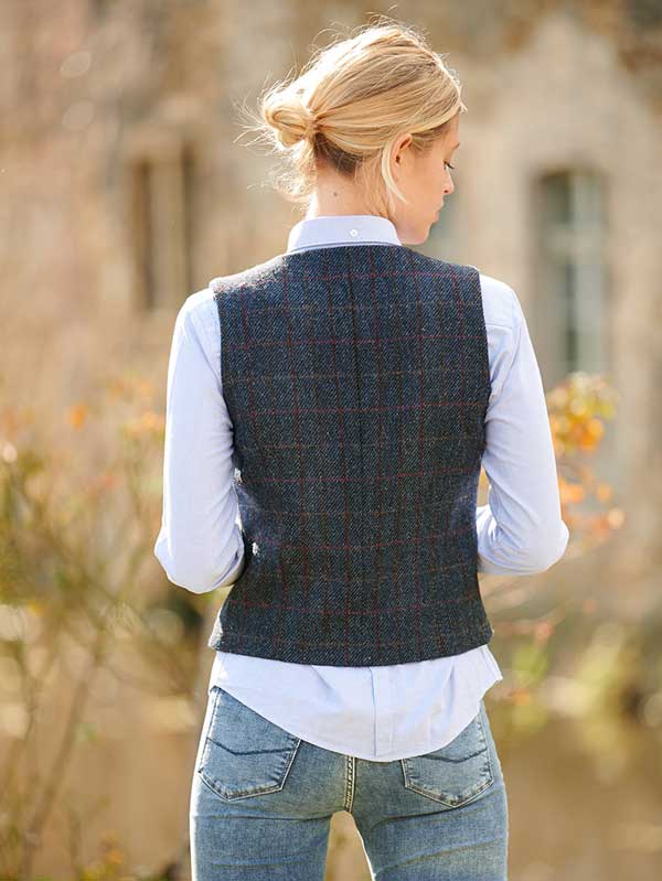 Harris Tweed Dames Vestje Lea In Scottish Blue 613.