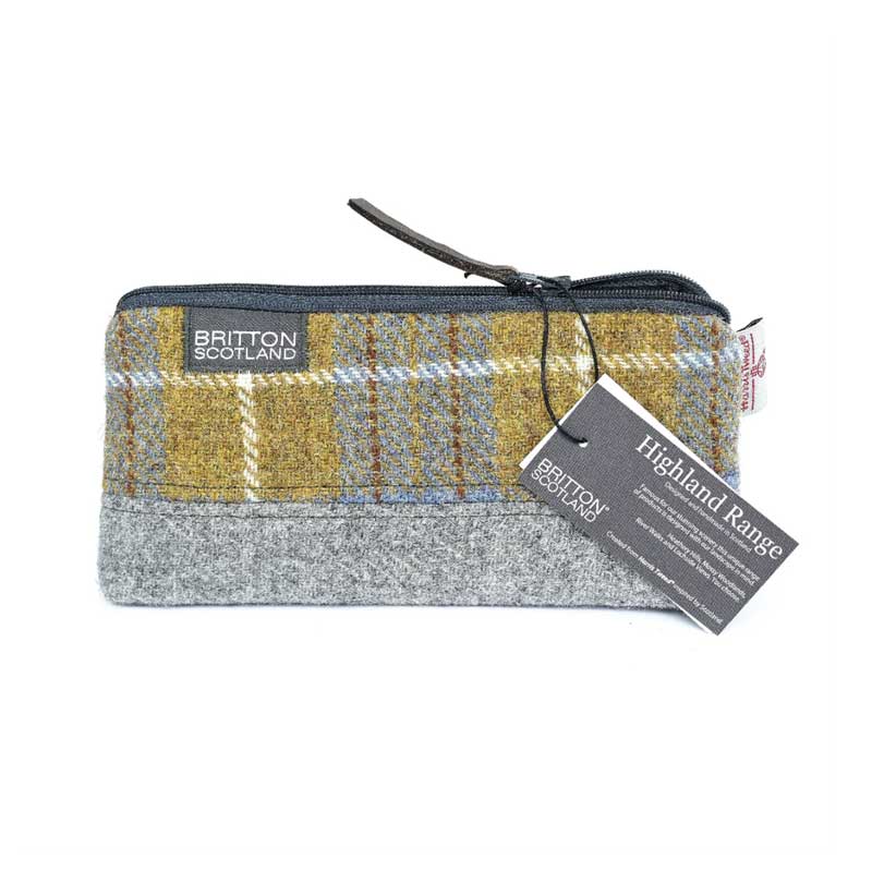 Harris Tweed Highland Range Cosmetic Bag Mustard Plaid.