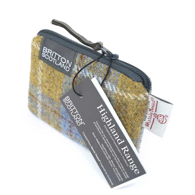 Harris Tweed Highland Range Slim Pencil Case Mustard Plaid.