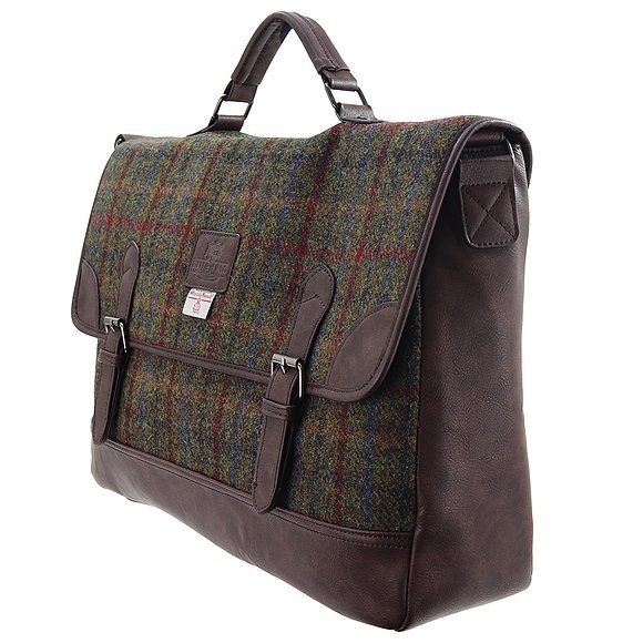 PU Trimmed Briefcase With Breanais Harris Tweed Front & Flap.