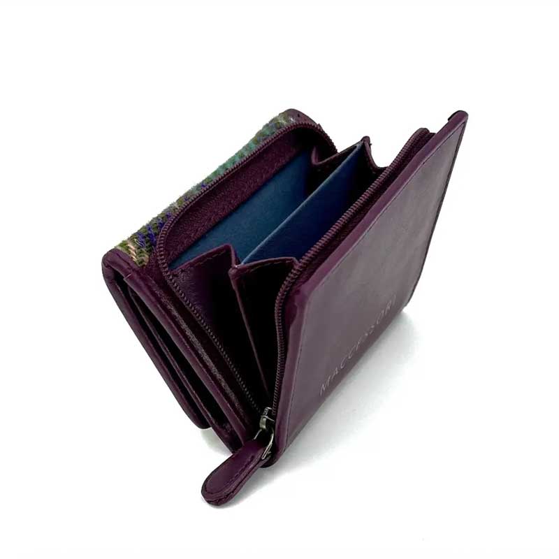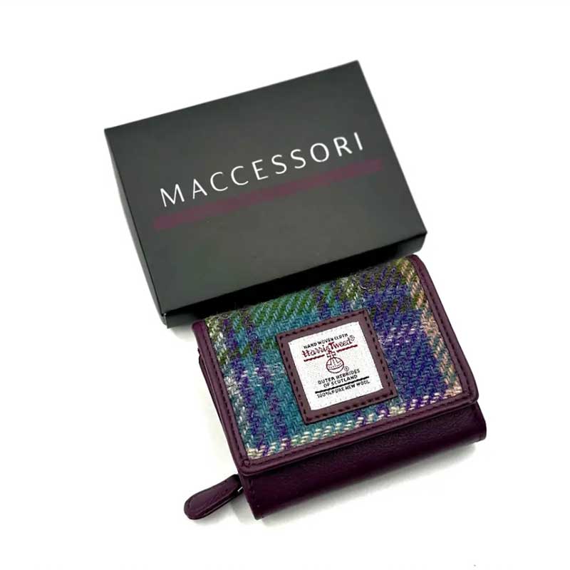 Harris Tweed Trifold Purse In Green/Purple Plaid