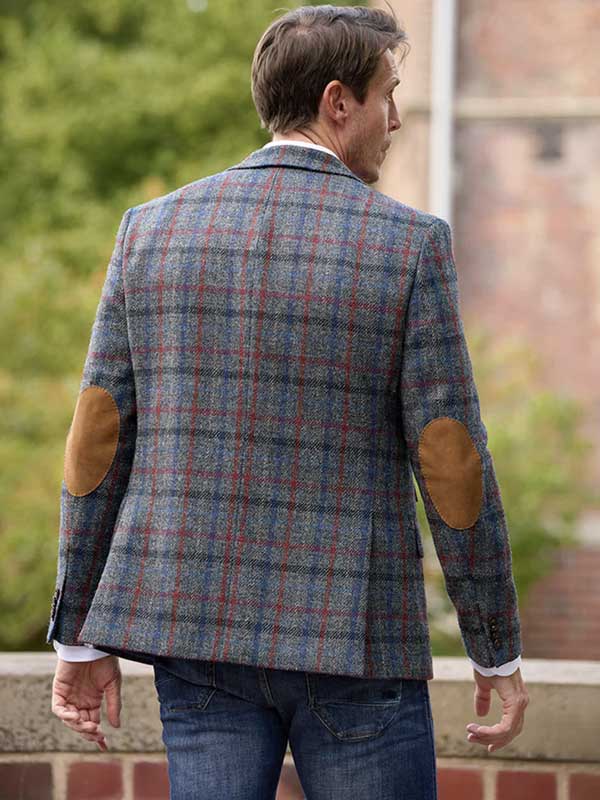 – 100% zuiver scheerwol– Eén borstzak– Eén binnenzak– Gekleurde voering– Licht getailleerd– Reverskraag– Voor- en achterkant volledig gemaakt van Harris Tweed– In breedte verstelbare lip aan de achterkant– Twee klepzakken en één ticketzakje aan de rechterkant