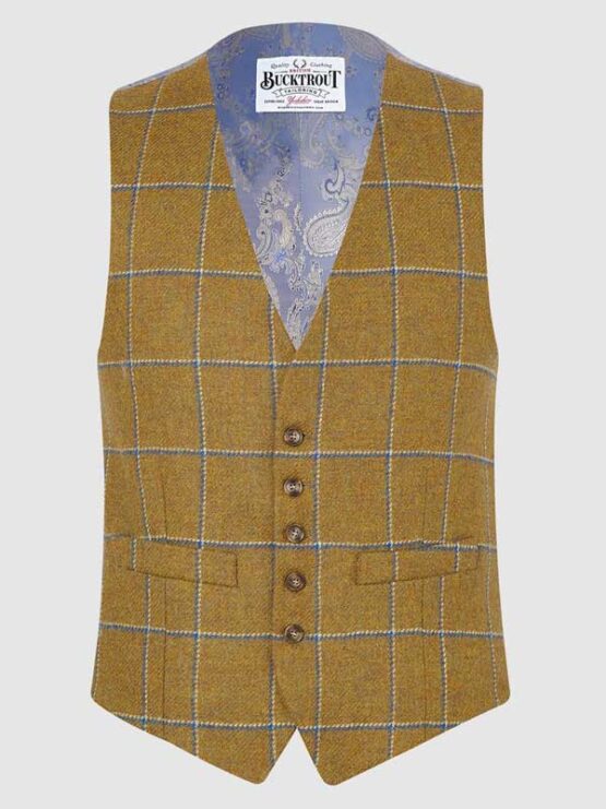 - Yorkshire Tweed Waistcoat in Mustard and Blue Check