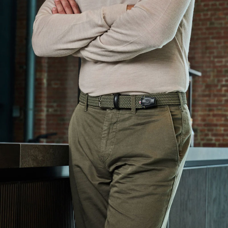 La Boucle-riemen combineren elegant design met uitzonderlijk draagcomfort. Dankzij de unieke elastische structuur sluit de riem altijd perfect aan, zonder de beperkingen van traditionele gaatjes. De riemen zijn vervaardigd uit duurzame, hoogwaardige materialen zoals plantaardig gelooid leer en sterk geweven elastiek.