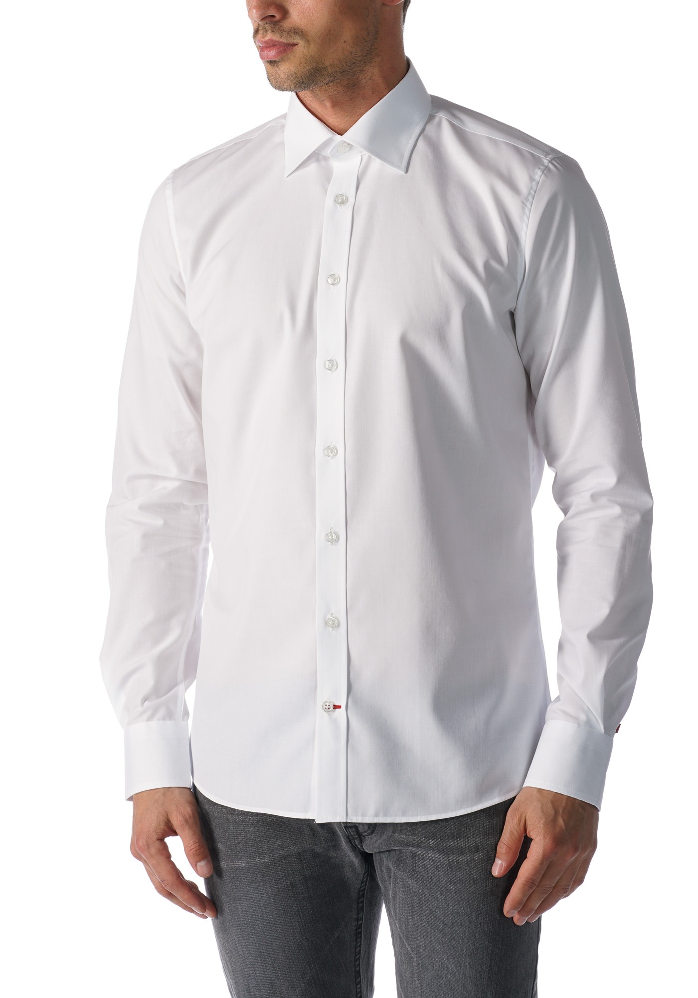 Huidkleurig T-shirt dat onder het businesshemd onzichtbaar is.