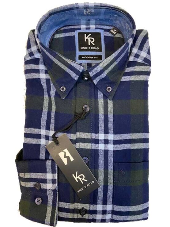 Shirt King’s Road, Blauw Groen Ruit, Zware Flannel