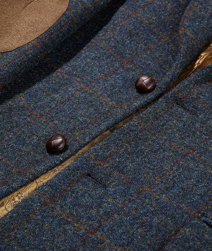 Klassiek en modern komen samen in dit elegante “London” fluwelen jasje, dat indruk maakt met zijn hoogwaardige vakmanschap en verfijnde uitstraling. Het jasje met twee knopen heeft een moderne snit, een reverskraag, twee klepzakken, een ticketzakje en twee splitten aan de achterkant. Liefdevolle details zijn onder andere de met blauwe wollen fleece gevoerde onderkraag, de contrasterende voering en de knopen met hoorneffect. Tijdloos en perfect voor een perfecte look, dit prachtige jasje kan stijlvol worden gecombineerd met een vest, pantalon en overhemd, of casual met een jeans en sneakers. Een must-have voor heren!